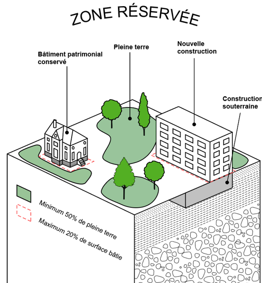 Les nouveaux projets seront toujours possibles selon les règles actuellement en vigueur, mais devront en plus respecter les règles de la zone réservée.