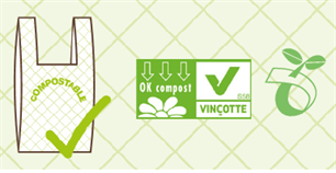 Un sac compostable est reconnaissable grâce à son quadrillage et doit avoir l’un des deux logos ci-dessous.